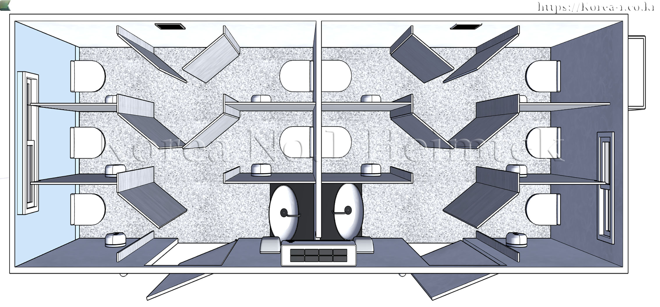 * 냉, 난방 시스템 및 음향기기, 핸드드라이어등 기본 편의시설 구성